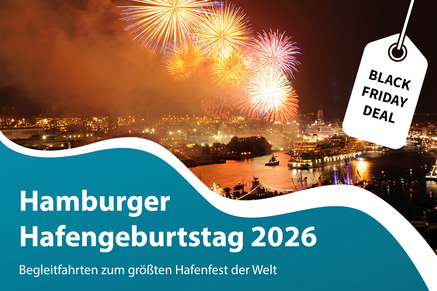 Sichern Sie sich vom 28.11. bis 01.12. unsere Black Friday Deals! Kaufen Sie Tickets für unser Silvester-Dinner im Speicherstadt Loft zum Aktionspreis oder buchen Sie Ihre Bordkarte für all unsere maritimen Events und profitieren Sie von 15 % Rabatt!